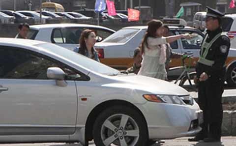 một cô gái xinh đẹp. Đỗ xe sai quy định, khi bị cảnh sát nhắc nhở thì cô lại lớn