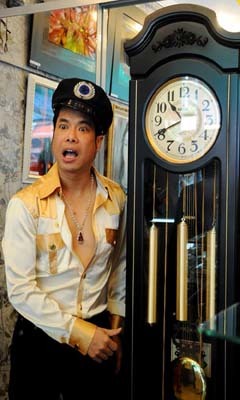 Tại buổi khai trương shop lưu niệm ca sĩ Ngọc Sơn đã "bê" nguyên chiếc đồng hồ
