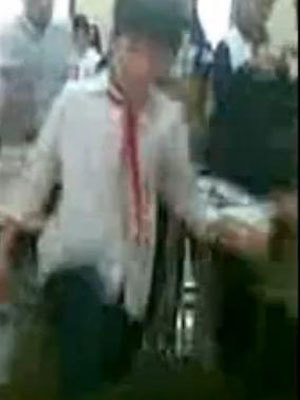 | Bị bạn đánh, nữ sinh cũng đứng phắt dậy và xông vào đánh lại nam sinh (Ảnh chụp từ clip) |