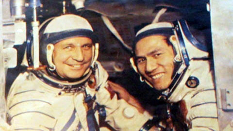 | Anh hùng Phạm Tuân (phải) trong chuyến bay vào vũ trụ. |