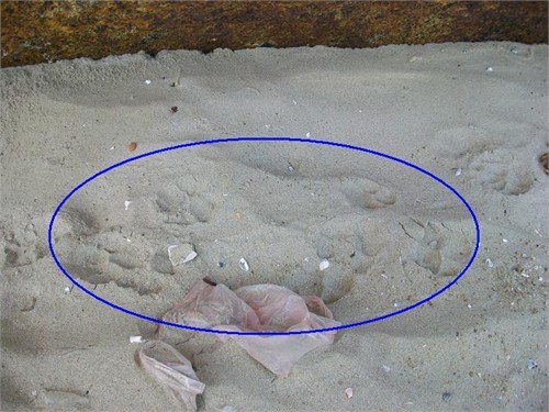 Dấu chân thú lạ để lại đầy rẫy trên cát (Nguồn: Bưu điện Việt Nam)