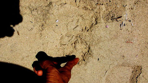 Vết chân của "quái thú" vẫn in hình trên cát (Ảnh: Tuổi trẻ) |