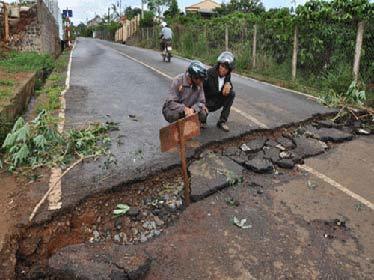 dài, trên địa bàn thị trấn xuất hiện nhiều vết nứt và độ lún cũng tăng thấy rõ.