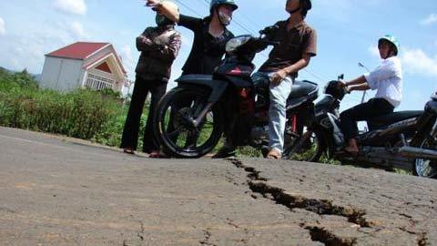 | Đường Nguyễn Văn Trỗi, khu phố 1, thị trấn Di Linh bị nứt ngang (Ảnh: VietNamNet) |