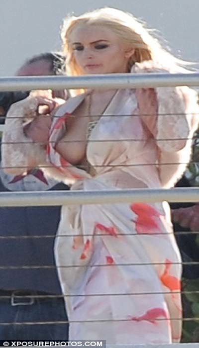 | LiLo để lộ đôi gò bồng đảo gợi cảm (Ảnh: Dailymail) |