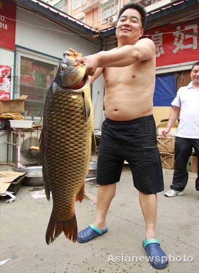 | Đây là lần đầu tiên người dân tỉnh Hà Nam, Trung Quốc được tận mắt nhìn thấy con cá chép to đến vậy (Ảnh: Asianewsphoto) |