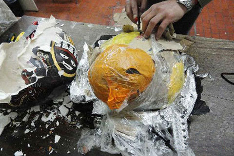 Ban đầu lực lượng hải quan tại sân bay đã dùng máy quét để kiểm tra nhưng không phát hiện ra trong đó chứa gì. Thấy có nhiều điểm nghi vẫn, lực lượng hải quan tiến hành kiểm tra trực tiếp gói bưu kiện và phát hiện ra xác ướp cùng số hộp sọ nói trên.
