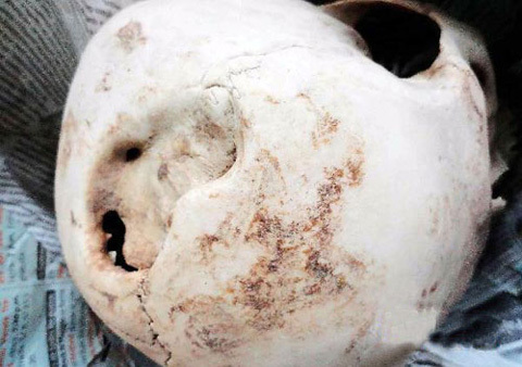 | Trên bề mặt một hộp sọ có lỗ nhỏ, là minh chứng cho cách chữa trị vết thương của người Inca |