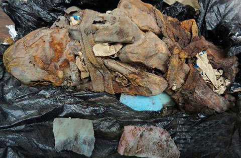| Xác ướp được bọc kỹ trong nhiều lớp vải |