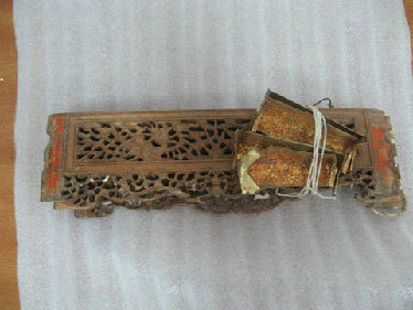 | Khay trà là đồ dùng hàng ngày của vua và hoàng hậu. Trong ảnh, khay trà trước khi tu sửa. |
