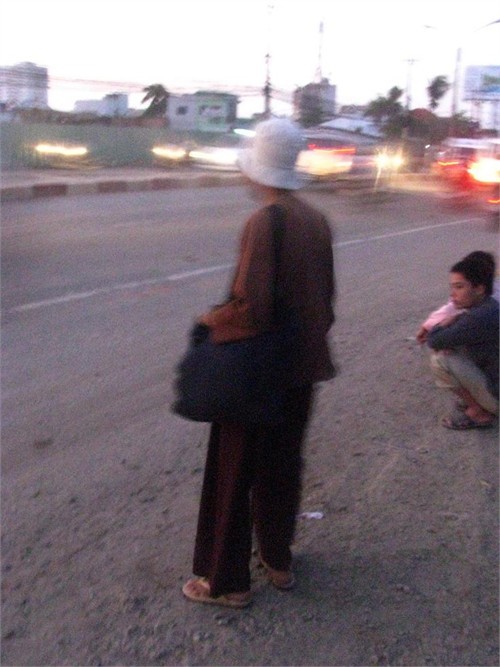 4h30 phút, từ trong con đường số 2 khu phố 3, phường Hiệp Bình Chánh, quận Thủ Đức, TP.HCM, từng dòng người cả đàn ông lẫn đàn bà tuổi từ 30 đến 70 đi ra. Với bộ đồ xám, chân mang dép lê, đầu đội mũ vành che nửa mặt, tay xách túi đen, họ trông giống như những người lao động chân chính dậy sớm đi làm. Thế nhưng theo chị M., người bán nước lâu năm tại đây, đó toàn là sư giả, ngày nào cũng vậy, cứ 4h30 phút họ lại kéo nhau đi “làm ăn”. Theo sự mách nhỏ của chị, chúng tôi quyết định theo hai người phụ nữ, một người chừng 30 tuổi và một trên 50.