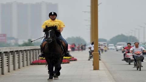 | Người dân Bắc Kinh, Trung Quốc đã thực hiện chiến dịch đến công sở bằng ngựa nhằm hưởng ứng ngày Môi trường thế giới (Ảnh: China Daily) |