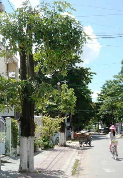 | Cây hoa sữa bị chặt bớt một phần để không trổ hoa (Ảnh: Dân Việt) |