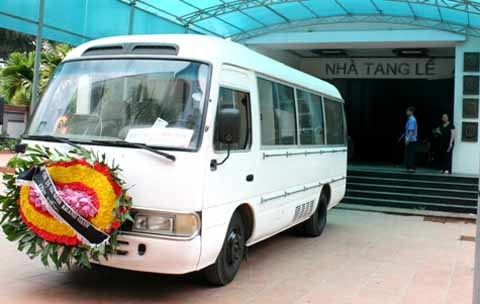| Chiếc xe tang gia đình ông Trần Mai đến chở thi hài cụ Huân |