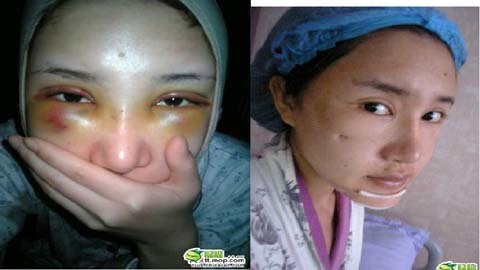 Các vết rạch dưới cằm, trên mũi và vết “gọt” má được cô chụp lại chi tiết và đăng tải trên blog cá nhân