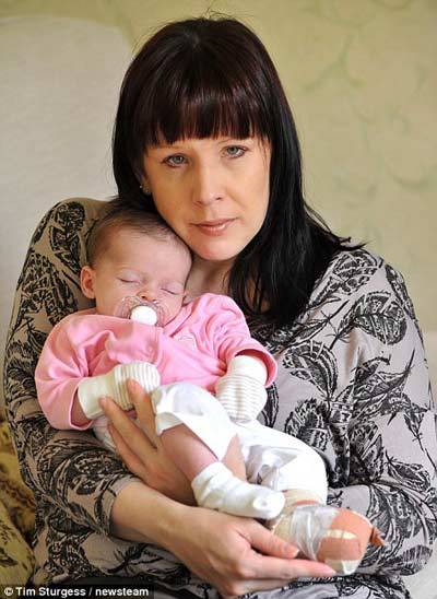 | Gót chân bé Katie bị bỏng nặng sau khi hai nữ hộ sinh ngâm chân của bé vào chậu nước nóng |