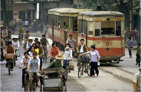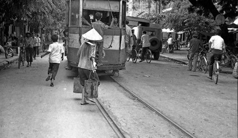 | Tàu điện là một hình ảnh rất quen thuộc ở Hà Nội nhiều thập niên trưóc. |