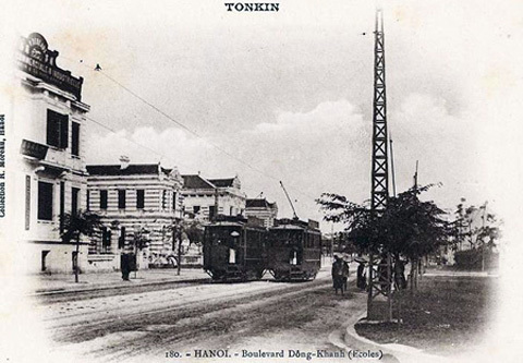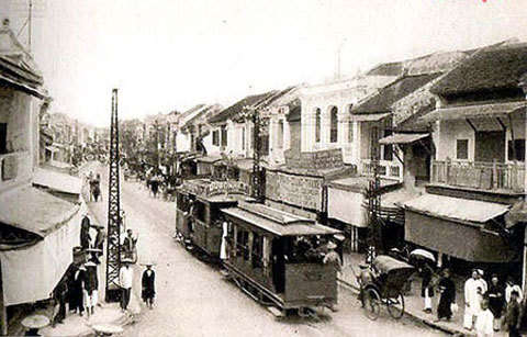 | Tàu điện chạy trong phố cổ thời Pháp thuộc. |