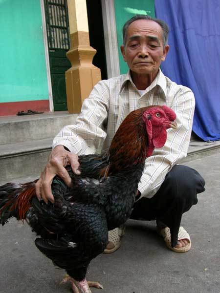 Trong sân nhà ông Nguyễn Thế Trà - một người cả đời đắm đuối bên những con vật hai chân ngoại cỡ quê mình, tôi mê mải nhìn những con gà khổng lồ, đi đứng lộc ngộc, thỉnh thoảng lại cất cao chiếc cần cổ vĩ đại gáy giọng ồ ồ vang vọng từ đầu làng, cuối xóm. Tiếng gáy có thể làm co rúm những con gà mái hoa mơ đang tuổi ghẹ trống ở nhà hàng xóm.