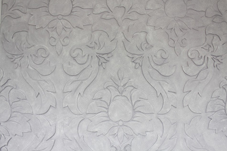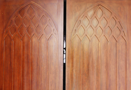 Bàn ăn mà cả hoa văn trang trí cánh cửa, tường nhà, đèn trần, giò hoa trang trí...