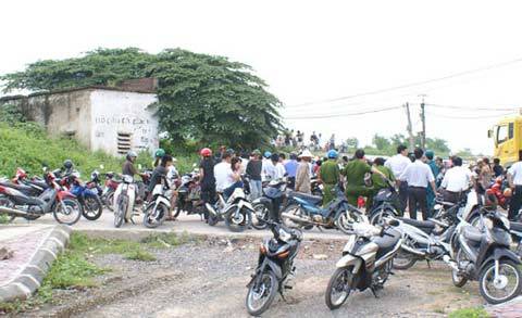 | Hàng trăm người dân hiếu kỳ có mặt tại hiện trường vụ việc (Ảnh: Báo Hải Dương) |