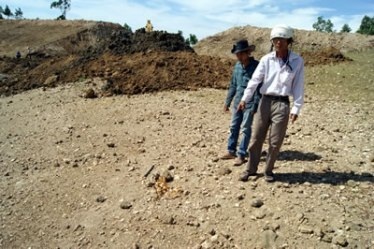 Ông Hùng và một người công nhân tại hiện trường vụ ném bom Bi (Nguôn: Báo Công