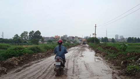 Đường be bét bùn đất, khiến các phương tiện khó khăn trong việc đi lại |
