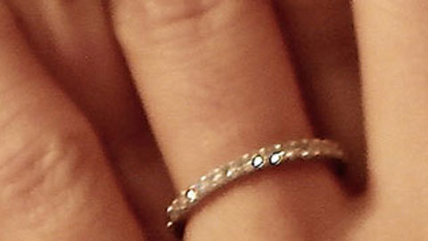 | Cận cảnh chiếc nhẫn kim cương trên ngón tay áp út của Bống. |