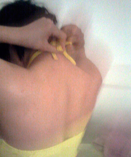 Ngày 8/12, trong bài viết “Nhật ký rơi nước mắt của nữ sinh tố thầy giáo tống tình”, Dân Việt có đưa ra một bức ảnh cô gái mặc áo yếm vàng với động tác (cởi hoặc buộc dây áo) được cho là của H. Chụp lúc 14 giờ 31 ngày 19/11/2010 được lưu trong điện thoại của thầy Huân.