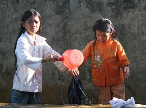 Trẻ em uống nước giếng mà không cần đun sôi |