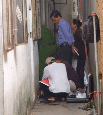 | Cơ quan chức năng đang khám nghiệm hiện trường vụ cháy hôm 24-6 (Ảnh: Báo Bình Dương) |