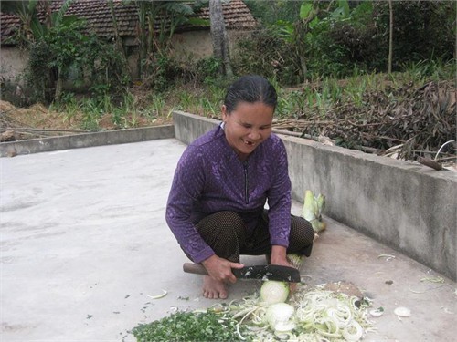 Từ công việc trong nhà như quét nhà, nấu cơm, giặt giũ quần áo, thái rau cho heo, rửa cốc, chén bát…cho tới việc đồng áng như gặt lúa, cắt rạ, cắt rau khoai… bà đều có thể làm được.