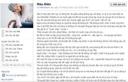 Mới đây, nữ ca sĩ Nini Khanh đã đăng tải một entry trên trang cá nhân “tố” đàn chị Phương Thanh đã có cách hành xử côn đồ với cô. Cụ thể, Nini Khanh cho rằng, cô ca sĩ của “Giã từ dĩ vãng” đã không ngại ngần “thượng cẳng chân hạ cẳng tay” với Nini Khanh. Chuyện đã trôi qua 10 năm nhưng khi entry này xuất hiện vẫn thu hút sự tò mò của dư luận.