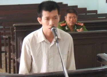 | Bị báo Nguyễn Minh Quang tại tòa (Nguồn: báo Vĩnh Long online) |