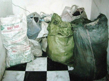 Số hài cốt được cất giấu trong các bao - Ảnh từ cơ quan công an cung cấp |