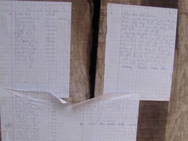 Mặt kia tờ "sớ", chồng bà Loan lập sẵn một danh sách ghi danh kèm theo số tiền ủng hộ. Đọc bản danh sách, chúng tôi thấy đã số mọi người đến chữa bệnh đều "quyên góp", với số tiền từ 100.000 – 2.000.000 đồng. Hai trang giấy học sinh ghi kín mít những dòng tên. Thậm chí, phía trong sổ lưu của chồng bà Loan còn có một bản dài đầy đủ tên tuổi, quê quán, lịch hẹn...