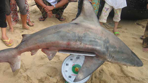 Con cá mập sọc trắng bị bắt hôm 11/7 (Ảnh: bee.net.vn) |