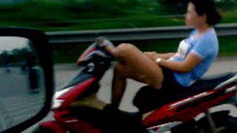 Khoảng 17h30' ngày 2/7, nhiều người tham gia giao thông trên tuyến đường Nguyễn Văn Linh (QL 5, đoạn qua quận Long Biên, Hà Nội) phát hoảng khi chứng kiến màn biểu diễn của một cô gái mặc váy, đầu không đội mũ bảo hiểm, điều khiển xe bằng một tay, hai chân vắt chữ ngũ phóng như bay trên đường, đi song song với chiếc ô tô bên cạnh.
