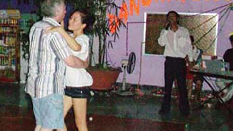 Và cũng không như sàn nhảy ở những Thành phố lớn, bên cạnh những bộ trang phục sang trọng, với đôi giày hiệu đắt tiền, có khá nhiều những chiếc áo thun rẻ tiền, chân mang dép dép lê “hoà nhau” trên sàn nhảy. Càng ngạc nhiên hơn khi nhìn thấy trong số khách nhảy còn có một ông “Tây”.