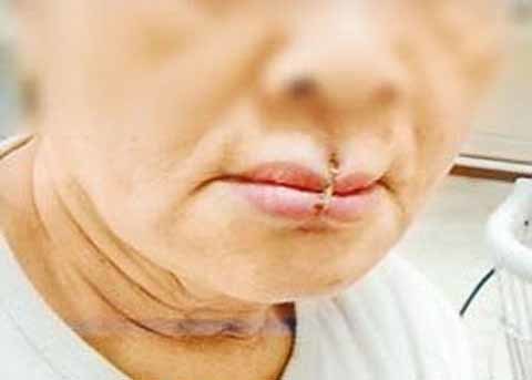 | Hình ảnh bà Lin sau khi tự khâu miệng mình |