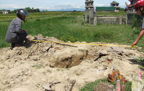 Ông Thới kể lại, ngày 8/6 gia đình ông trong lúc đi gặt lúa ngang qua nghĩa địa Cồn Nậy thuộc thôn Võ Xá trên địa bàn xã thì phát hiện phần mộ của anh trai ông là Lê Văn Thảnh (mất năm 1999) đột nhiên biến mất. Tại hiện trường chỉ còn lại chiếc hố sâu vừa bị đào bới.