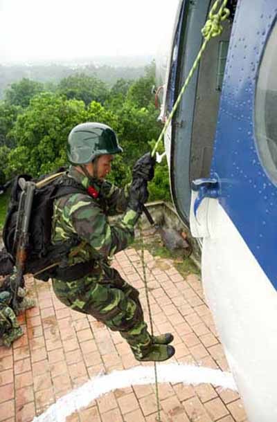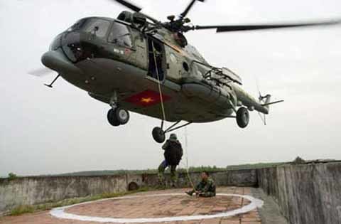 Thực hiện nhiệm vụ huấn luyện năm 2011, Trung đoàn không quân trực thăng 917 - Sư đoàn không quân 370 vừa phối hợp với các đơn vị bạn kết thúc nội dung huấn luyện đổ bộ đường không trên nóc nhà cao tầng.