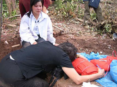 chức cuộc tìm mộ rú lên một tiếng rồi lăn ra đất. Ngay lập tức, chị Thiêm và