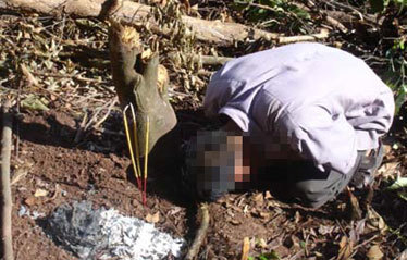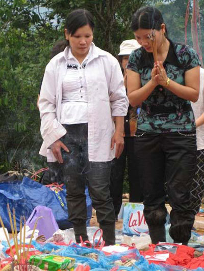 ra đất, khói nhang nghi ngút báo cáo thần linh, thổ địa và mời hương hồn các
