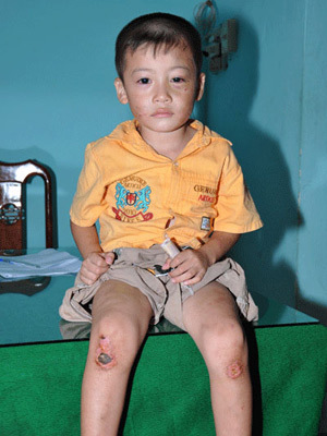 | Cháu Dương với các vết thương trên cơ thể (Ảnh: NLĐ) |