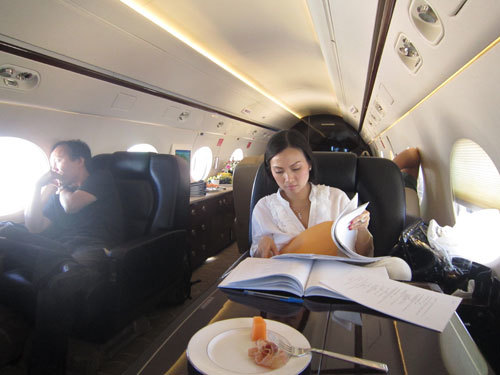 Hà Phương trên chuyên cơ riêng để bay qua Monoco – Pháp