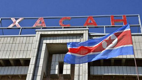| Quốc kỳ Triều Tiên tung bay tại ga Khasan. |