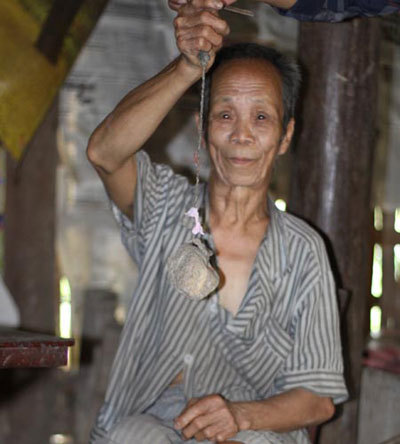 đó chỉ những người có uy tín trong tộc mới được quyền cất giữ. Mặt nghiêm nghị,