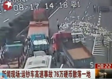 Theo tường thuật của các nhân chứng, khi đi đến đoạn đường này, chiếc móc sắt của cánh cửa phía sau xe chở tiền bỗng dưng bung ra, cánh cửa mở toang và những bọc tiền rơi vãi khắp đường, ước tính chừng 760.000 nhân dân tệ (khoảng hơn 2 tỷ đồng).