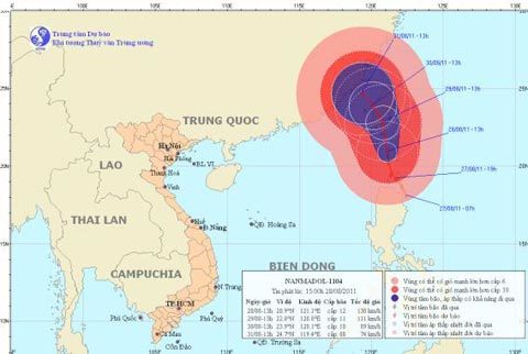 Theo Trung tâm Dự báo Khí tượng Thủy văn Trung ương, hồi 13h ngày hôm nay (ngày 28/8), vị trí tâm bão ở vào khoảng 20,9 độ Vĩ Bắc; 121,1 độ Kinh Đông, trên vùng eo biển Đài Loan - Philippin. Sức gió mạnh nhất ở vùng gần tâm bão mạnh cấp 12, cấp 13 (tức là từ 118 đến 149 km một giờ), giật cấp 14, cấp 15.